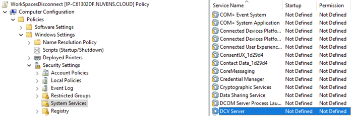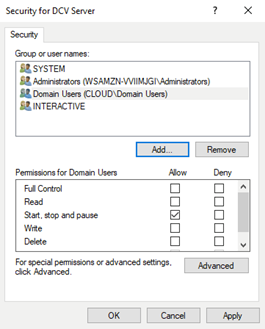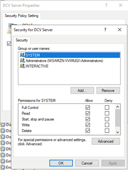 If WSP is in use: Locate and modify the service called "DCV Server".