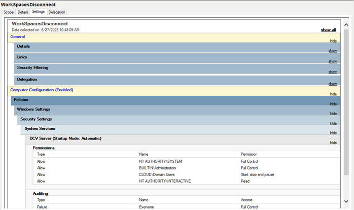 In the GPO you've edited (e.g., "WorkSpacesDisconnect"), select the "Settings" tab.
