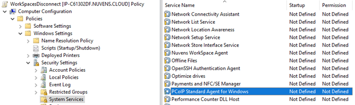 Policy Management for PCoIP If your WorkSpaces vDesktop Farm includes a mix of both WSP and PCoIP devices, you will need to modify both services. You can use the same GPO policy, but you must apply the changes from a WorkSpace running the specific protocol. In the example above, we used a WorkSpace with WSP to install the Group Policy Management applet. Similarly, you will repeat the process from a PCoIP WorkSpace. The steps remain the same, with the only difference being the service name, which changes from "DCV Server" to "PCoIP Standard Agent for Windows".
