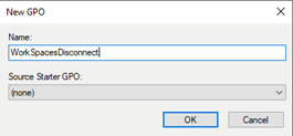 Name the GPO "WorkSpacesDisconnect" or any other name that aligns with your organization's security standards. This naming convention will help easily identify the purpose of the GPO within your Group Policy Management structure.